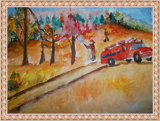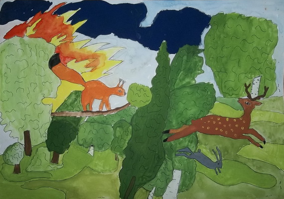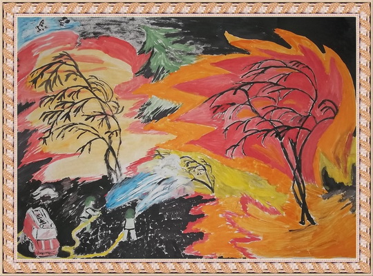 Второе место -Пожар в лесу Марцонь Екатерина, педагог Сергеева Татьяна Васильевна. Центр детского творчества, г. Тында