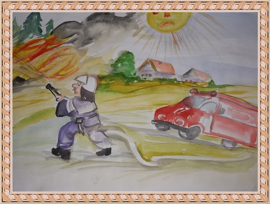 Третье место -Пожарные спешат на помощь Новик Карина, педагог Окладникова Вера Аркадьевна. Детский сад №35, с. Нижняя Пёша