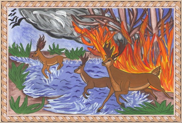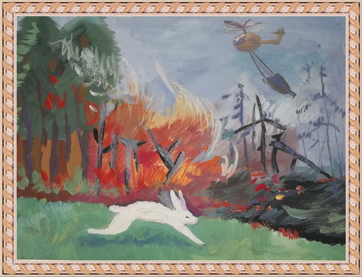 Второе место -Пожар в лесу Варлахова Евгения, педагог Овчинникова Алевтина Викторовна. Центр развития творчества детей и юношества "Звёздный", г. Астрахань