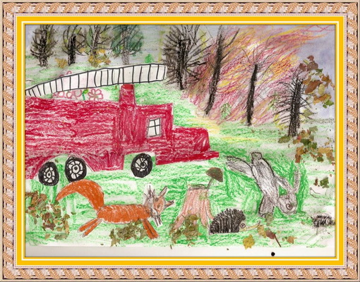 Второе место -Пожар в осеннем лесу Бабенкова Катя, педагог Казак Ирина Николаевна, Стрекозова Наталья Викторовна. Детский сад "Солнышко", п. Чернянка