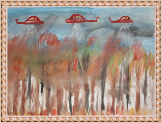 Второе место -Пожар в деревне возле леса Пронюшкин Максим, педагог Егорова Надежда Владимировна. Детский сад №162 "Акварелька", г. Чебоксары
