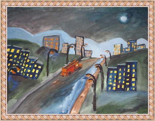 Третье место -Ночной пожар Болотова Светлана, педагог Золотарева Ольга Александровна. Дом детского творчества, с. Атаманово