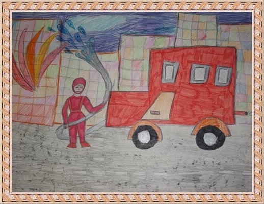 Третье место -Рабочий день пожарного Мелякина Полина, педагог Гусева Александра Евгеньевна. Центр детского творчества