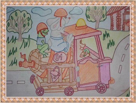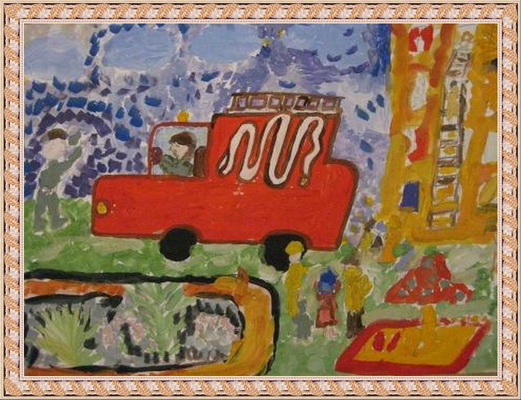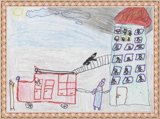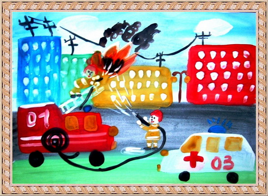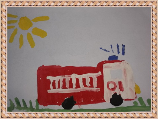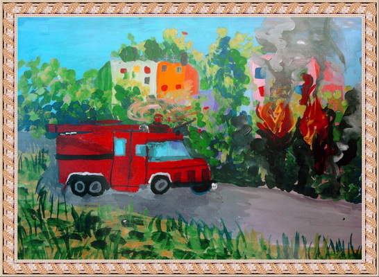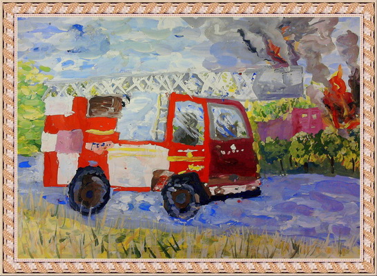 Третье место -Пожарные машина спешит на помощь Мосина Вика, педагог Музафарова Светлана Михайловна. Центр детского творчества, г. Междуреченск