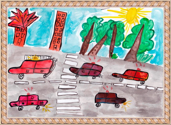 Второе место -Куда спешат красные машины? Корнеев Константин, педагог Юрлина Роза Викторовна. Дом детского творчества №1, г. Мариинск