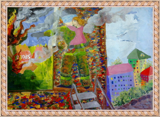 Третье место -Пожар на даче Сухомлинова Настя, педагог Алиева Елена Витальевна. Центр развития творчества детей и юношества, г. Кемерово