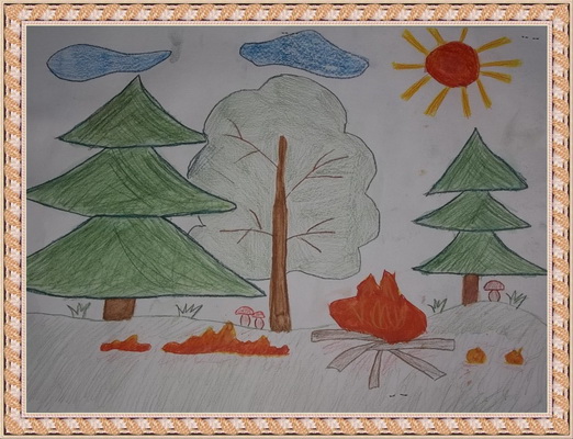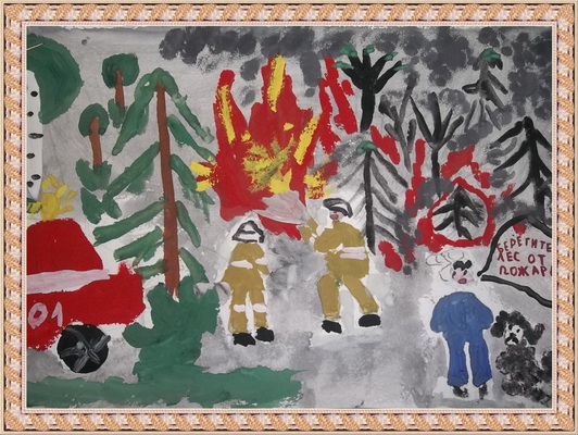 Третье место -Берегите лес от пожара! Кобзева Вика, педагог Шафалюк Ирина Степановна. Детский сад №44 "Земляничка"