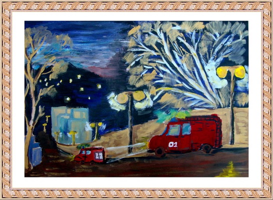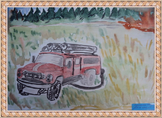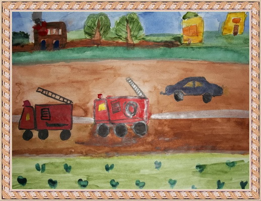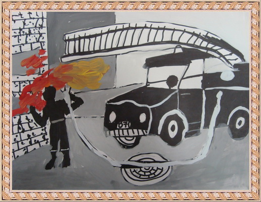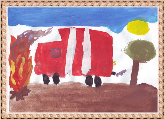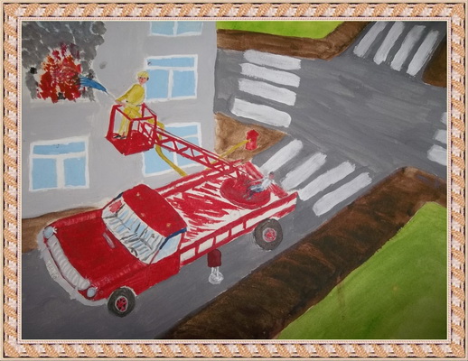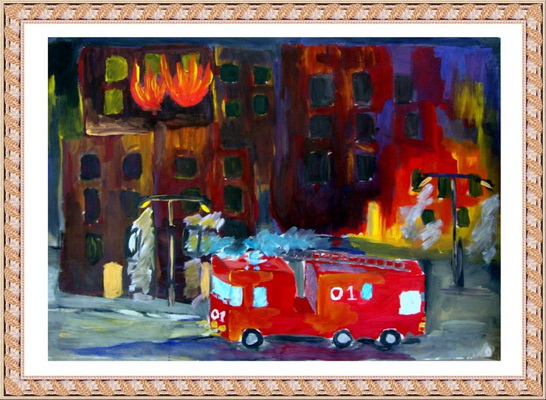 Второе место -Красная машина на пожаре Илюшина Полина, педагог Назарова Ирина Александровна. Детская школа искусств, г. Ступино