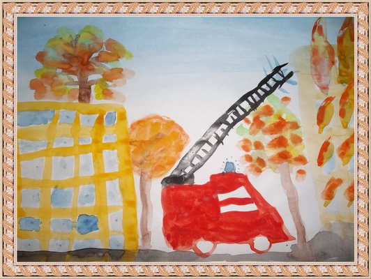 Победитель -Пожарная машина спешит на помощь Елизарова Виктория, педагог Баловнева Елена Алексеевна. Детский сад №27 "Семицветик", п. Коммунарка