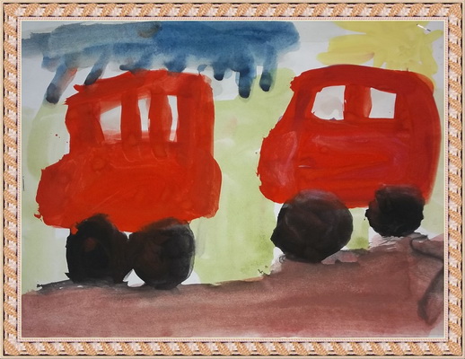 Третье место -Куда спешат красные машины? Алёшин Арсений, педагог Когтева Светлана Вячеславовна. Детский сад №47 "Петушок", п. Томилино