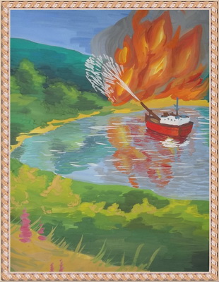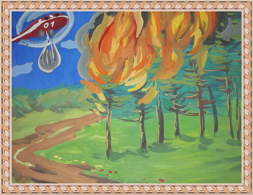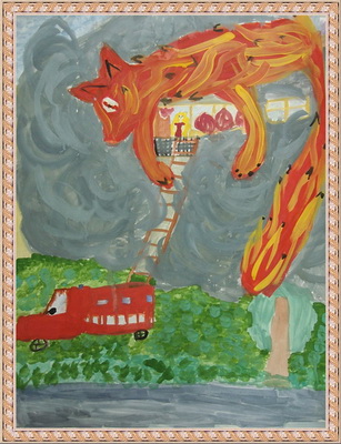Третье место -Пожар в лесу Сиротина Маша, педагог Коржан Татьяна Викторовна. Детский сад №13 "Золотая рыбка", г. Клин
