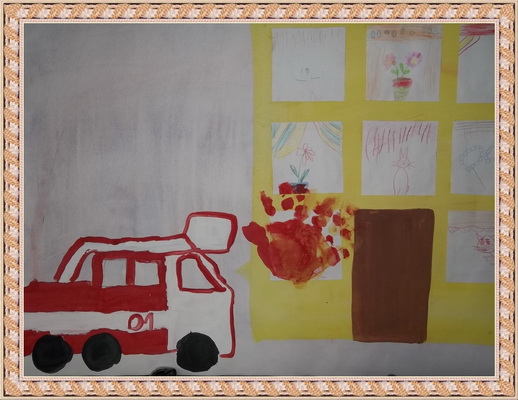 Третье место -Пожарники и пожар! Назарова Юля, педагог Печникова Гаянэ Арсеновна. Детский сад №5 "Сказка", г. Мытищи