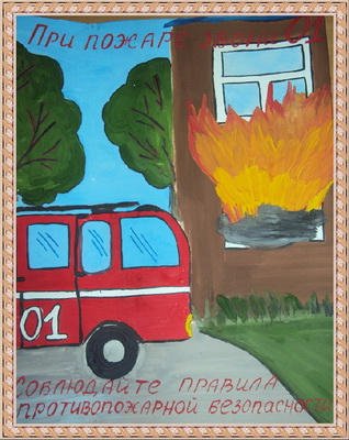 Третье место -Внимание — пожар Бамбина Таня, педагог Вендина Галина Николаевна. Детский сад №4, г. Бронницы