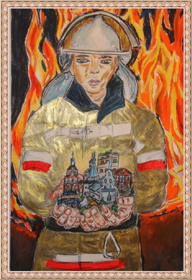 Третье место -Огнеборец - профессия настоящих мужчин Герасимович Ира, педагог Назарова Ирина Александровна. Детская школа искусств, г. Ступино