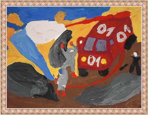 Второе место -Куда спешат красные машины Суркова Александра, педагог Мосолова Виктория Ивановна. Гимназия №5, г. Рязань