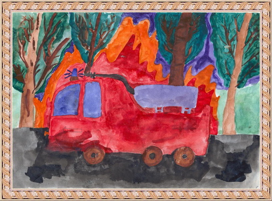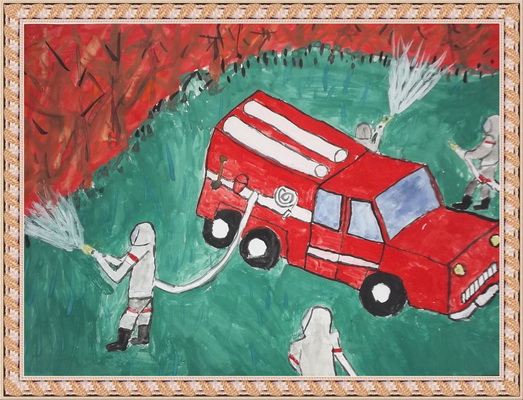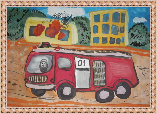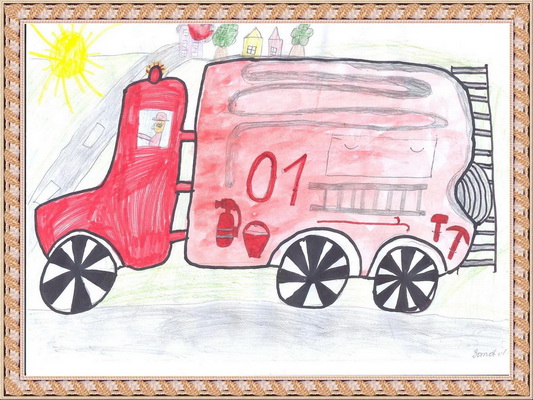 Победитель -Пожарная машина всегда придет на помощь. Николаева Виктория, педагог Оксана Александровна Праслова. Начальная школа-детский сад "Гармония", п. Безенчук