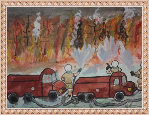 Победитель -Лесной пожар Знобищева Полина, педагог Чуваткина Нина Викторовна. Детский сад "Колокольчик", с. Борское