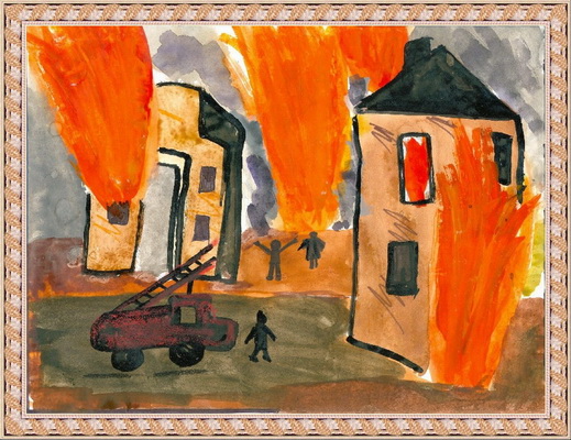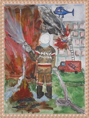 Третье место -Пожар в доме Лаптева Вика, педагог Туманина Ольга Владимировна. Детский сад №12, г. Отрадный