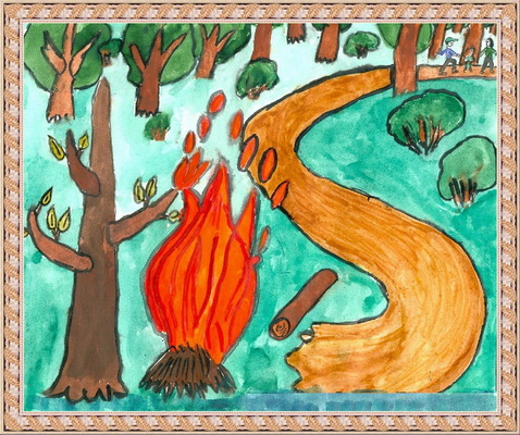 Третье место -Пожар в лесу Сапожкова Оксана, педагог Попова Наталья Васильевна. Средняя общеобразовательная школа, п. Садгород