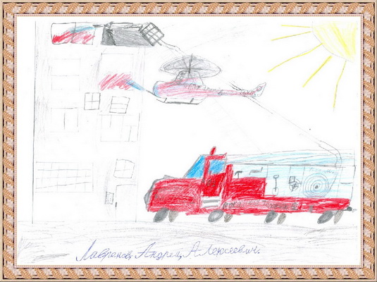 Третье место -Пожар на крыше Киселёв Максим, педагог Панкина Вера Александровна. Детский сад №15, г. Отрадный