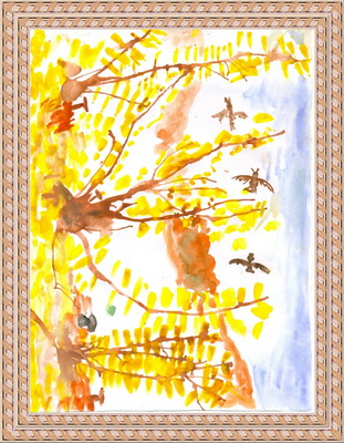 Третье место -Лесной пожар Апалеева Раиля, педагог Апалеева Розалия Ахтамовна. Средняя общеобразовательная школа №1, с. Шентала