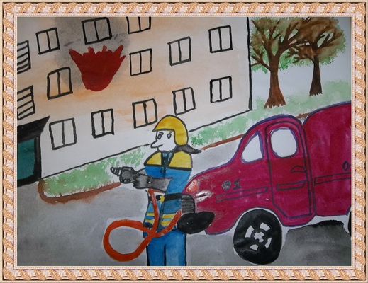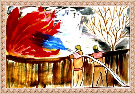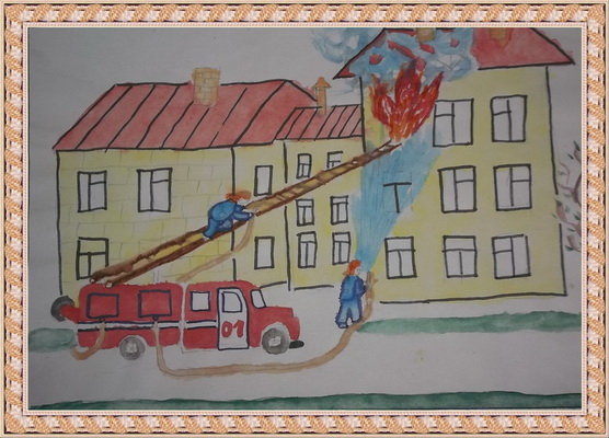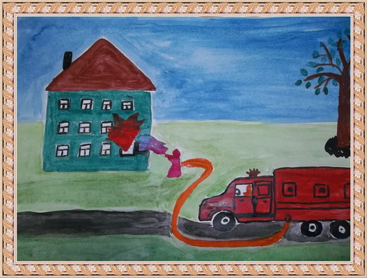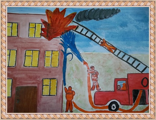 Третье место -Рабочий день пожарных Федорова Валерия, педагог Никифорова Татьяна Ильинична. Средняя общеобразовательная школа, п. Ровное