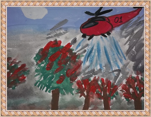 Третье место -Лесной пожар Братчиков Ваня, педагог Фролова Светлана Сергеевна. Детский сад №20 "Аленький цветочек", г. Саратов