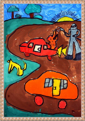 Третье место -Красная машина едет на пожар Ляховская Дарья, педагог Чеклова Галина Евгеньевна. Средняя общеобразовательная школа №113, г. Волгоград