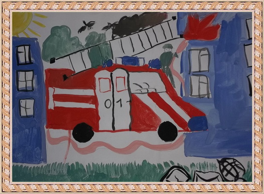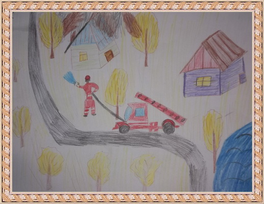 Третье место -Пожарные прибыли вовремя Суховей Денис, педагог Вашумирская Севим Албенковна. Детский сад, г. Губкинский
