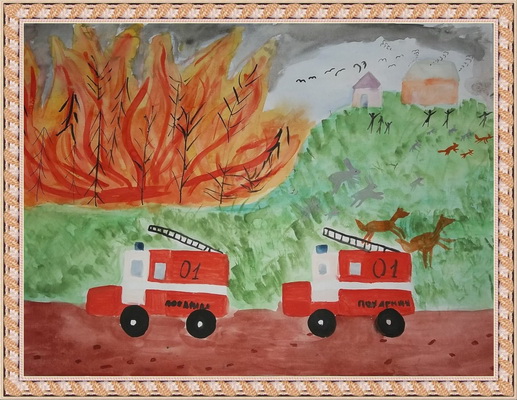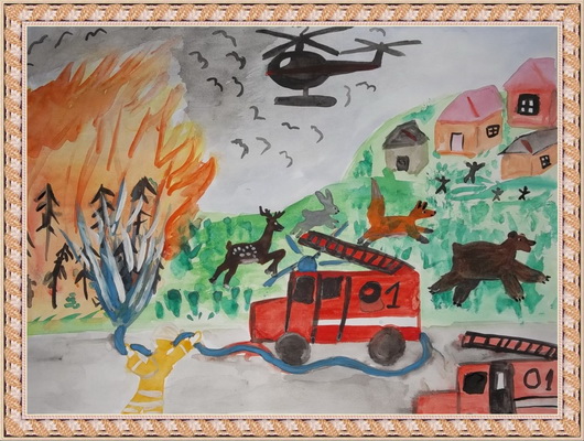 Победитель -Пожар в лесу Хамаганова Зоя, педагог Моисеева Н.А.. Начальная общеобразовательная школа №1, п. Нижнеангарск