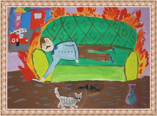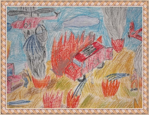 Второе место -Пожар в доме Фокин Андрей, педагог Миллер Анна Андреевна. Детский сад №64, Ставропольский край, г. Ставрополь