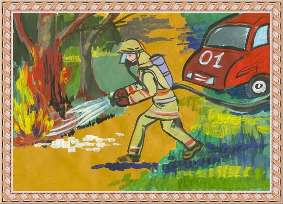 Второе место -Пожарник идёт на помощь Хохоева Эльмира, педагог Гуцунаева Ольга Эдуардовна. Дворец детского творчества, Республика Северная Осетия - Алания, г. Владикавказ