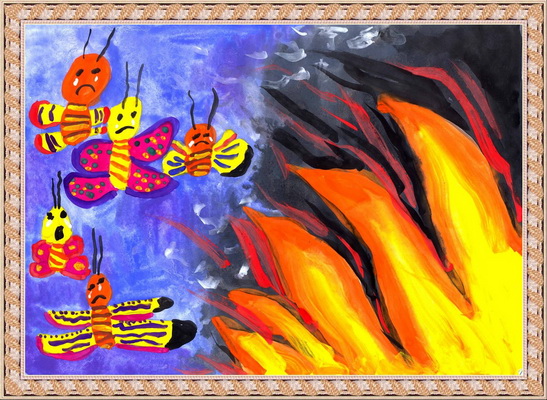 Третье место -Пожар в степи Хохоев Тимур, педагог Гуцунаева Ольга Эдуардовна. Дворец детского творчества, Республика Северная Осетия - Алания, г. Владикавказ