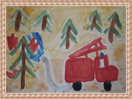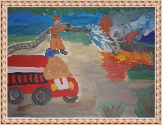 Третье место -Опасный труд пожарных Прохорова Света, педагог Прохорова Оксана Васильевна. Детский сад №7, Калининградская область, г. Калининград