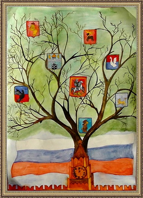 Третье место -Композиция: Гербы Российских городов Идиятуллина Айша, педагог Лопуха Елена Ивановна. Детская школа искусств "Вдохновение ", г.Москва