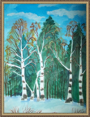Третье место -Березы у реки Коваленко Алёна, педагог Костоломова Елена Александровна. Дом детского творчества, Иркутская область, г.Бодайбо