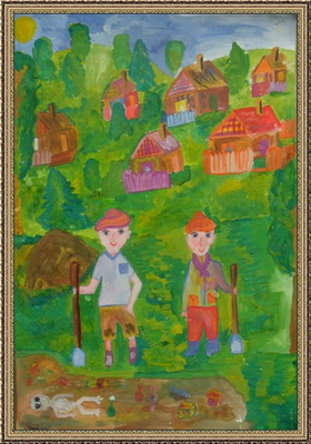 Второе место -Раскопки на Хирхиринском городище в Забайкальском крае Стукова Даша, педагог Колесникова Мария Петровна. Детская художественная школа, Забайкальский край, г.Краснокаменск