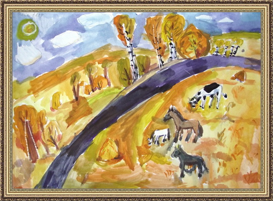 Победитель -Осень. На лугу пасутся Ко.. Милешкина Мария, педагог Казанцева Ирина Михайловна. Детская художественная школа №27, Кемеровская область, г.Белово