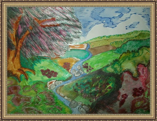 Третье место -Пейзаж Жбанова Екатерина, педагог Султанова Зарема Ашимжановна. Детский сад №140, Красноярский край, г.Красноярск