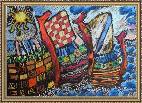 Второе место -Корабли купеческие Харламова Милена, педагог Севостьянова Надежда Анатольевна. Муниципальный центр №78, Санкт-Петербург,