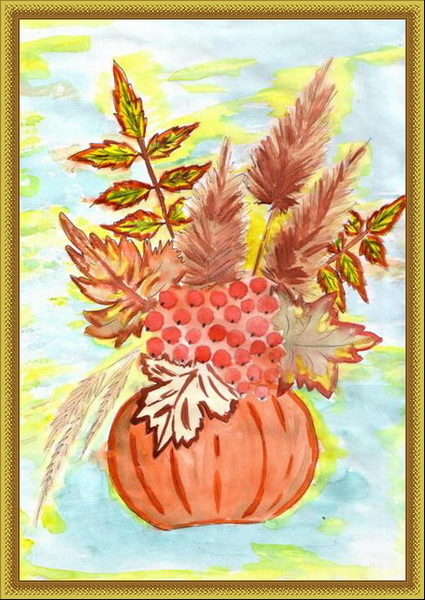 Третье место -Осенний натюрморт Лютова Елизавета, педагог Кравченко Марина Владимировна. Детский сад №12, г. Алексеевка