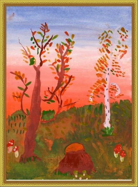 Третье место -Осенний лес Павлова Ольга, педагог Чуева Оксана Сергеевна. Средняя общеобразовательная школа №10, г. Губкин