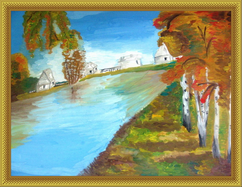 Третье место -Осенний рейзаж Шиленкова Полина, педагог Епимахова Ольга Валентиновна. Средняя общеобразовательная школа №1, г. Наволоки