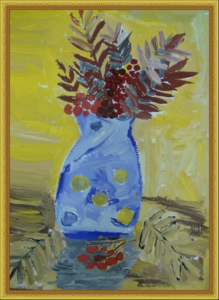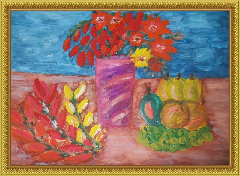 Второе место -Осенний натюрморт Рысакова Мария, педагог Позднякова С. Н.. Центр образования №1429