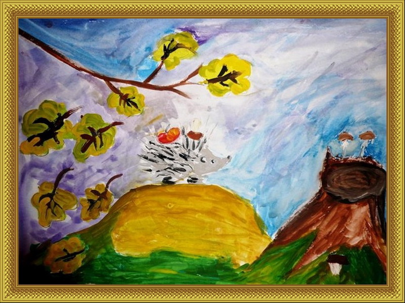 Второе место -Запасливый ёжик Мокшанкина Александра, педагог Литвинова Елена Андреевна. Детская школа искусств им. В.К.Андреева