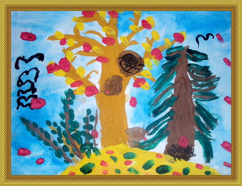 Третье место -Золотая осень Кудымова Дарья, педагог Радостева Мария Вячеславовна. Детский сад №11 "Чебурашка", р-н Кудымкар