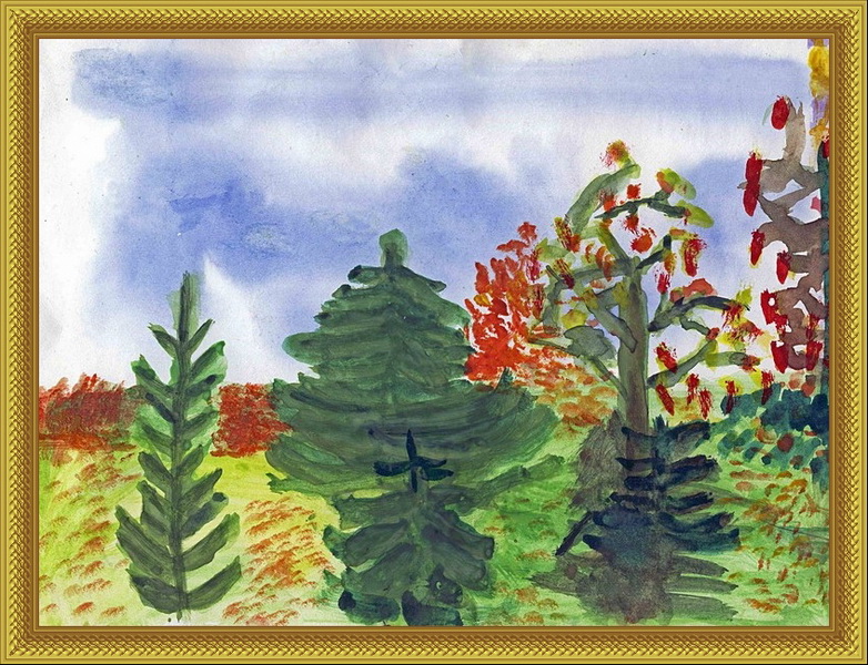 Третье место -Осенний лес Гриненко Ангелина, педагог Ларькова Наталья Евгеньевна. Дом детского творчества, с. Сива