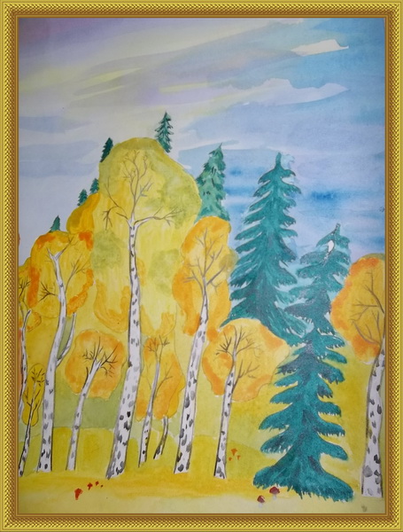 Второе место -Осень в лесу Осипов Виталий, педагог Беркута Юлия Николаевна. Средняя общеобразовательная школа №34, г. Саратов