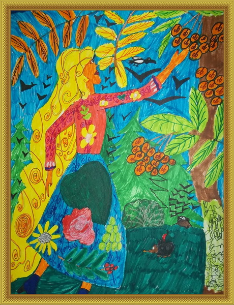 Третье место -Аллегория осени Гафиатуллина Амина, педагог Постнова Татьяна Геннадьевна. Детская художественная школа им. М.Х.Хаертдинова, г. Лениногорск