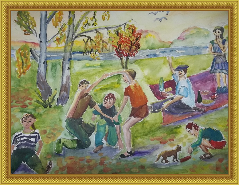 Второе место -Осенний пикник Харитонова Валерия, педагог Зыбина Наталья Николаевна. Детская художественная школа №2, р-н Набережные Челны